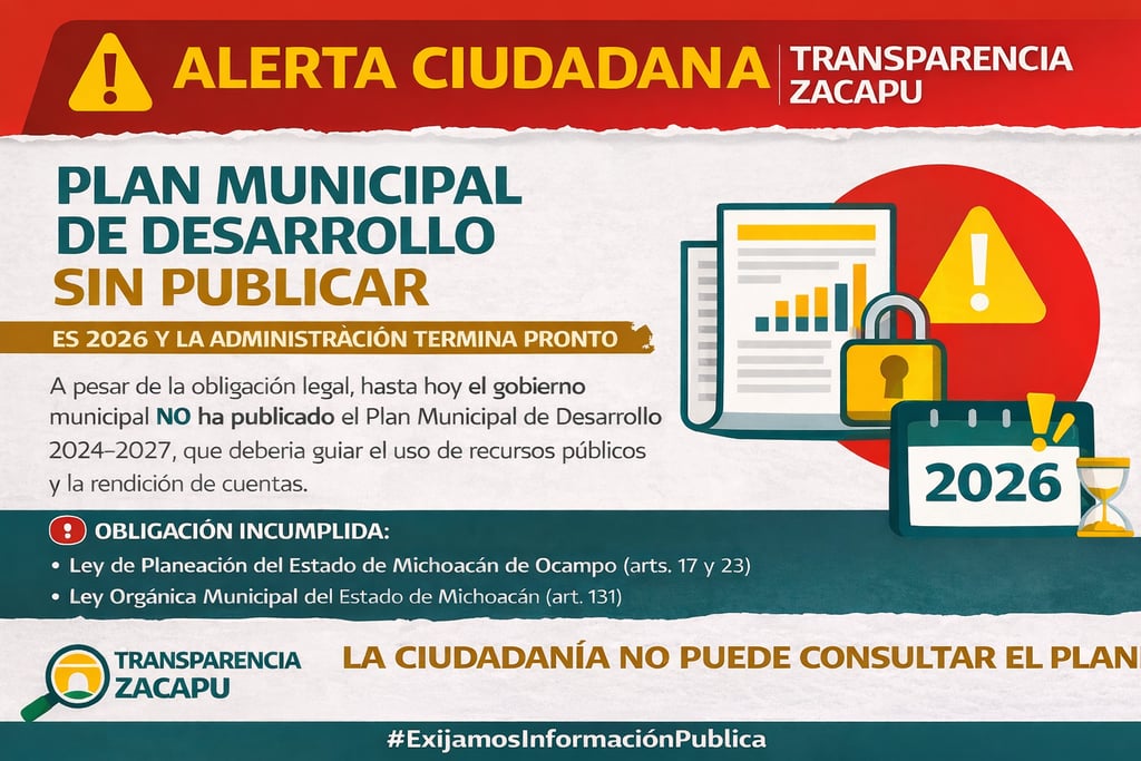 Alerta ciudadana: Zacapu sigue sin publicar su Plan Municipal de Desarrollo en 2026