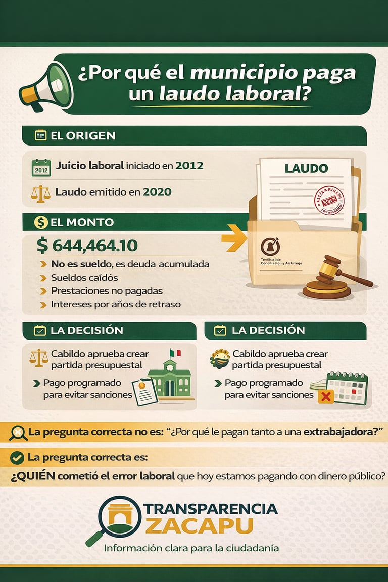 Explicación ciudadana del pago de un laudo laboral en Zacapu: por qué se paga, de dónde viene la deuda y cómo impacta al presupuesto municipal.